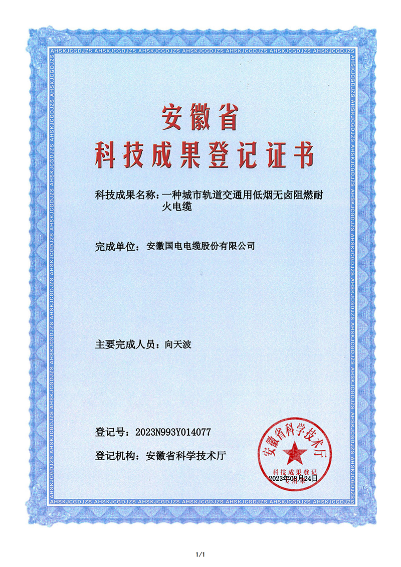 城市軌道交通用低煙無鹵阻燃耐火電纜 向天波