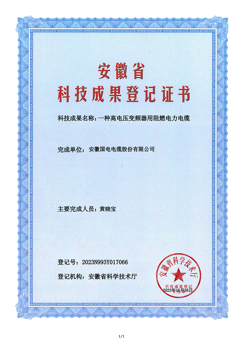 高電壓變頻器用阻燃電力電纜 黃曉寶